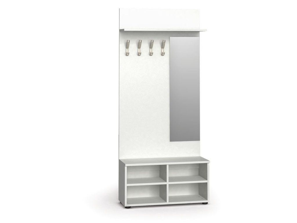 Věšáková stěna s botníkem a zrcadlem HORIZONT, 4 háčky, police, bílá