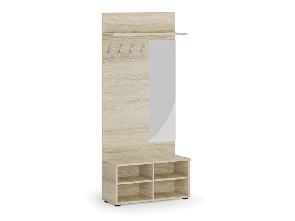 Věšáková stěna s botníkem a zrcadlem HORIZONT, 4 háčky, police, léta vodorovně, dub přírodní