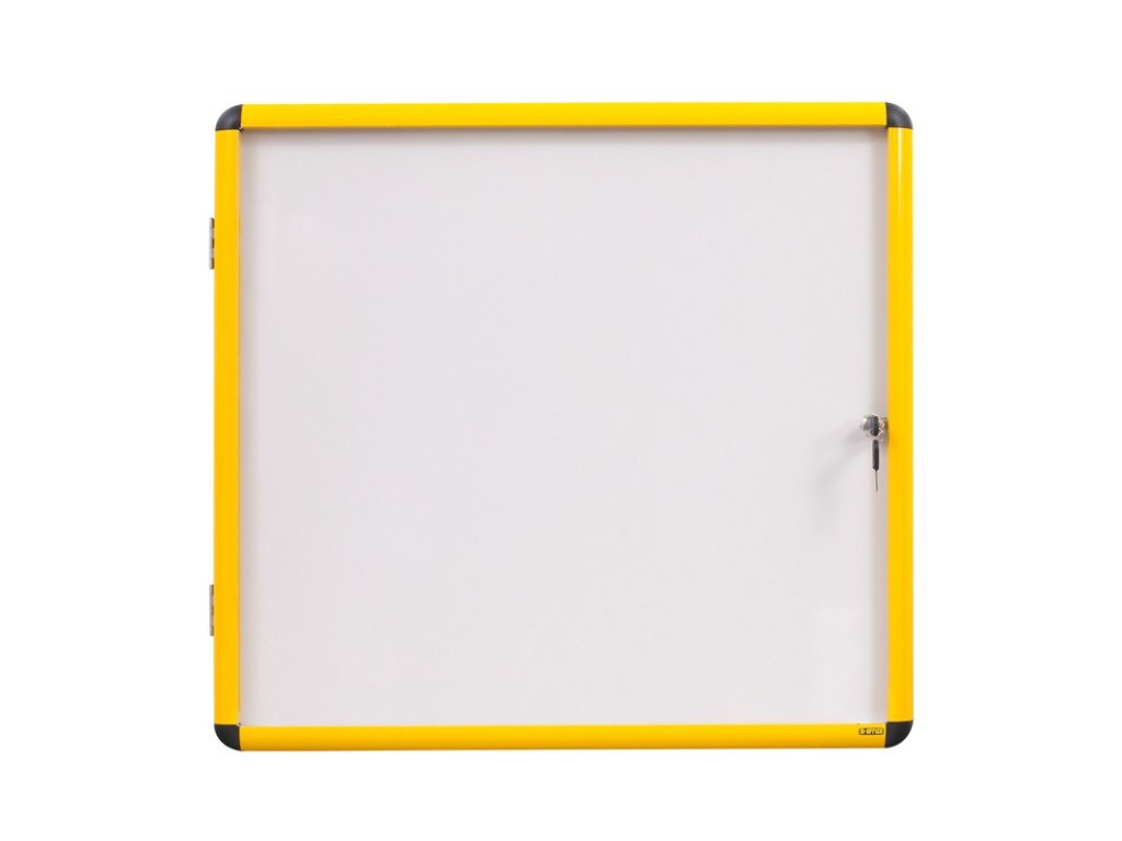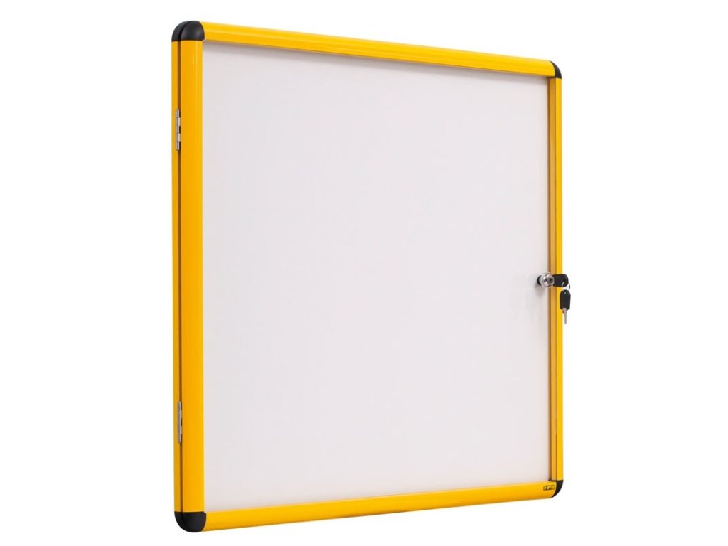 Vnitřní vitrína s bílým magnetickým povrchem, žlutý rám, 720 x 981 mm (9xA4)