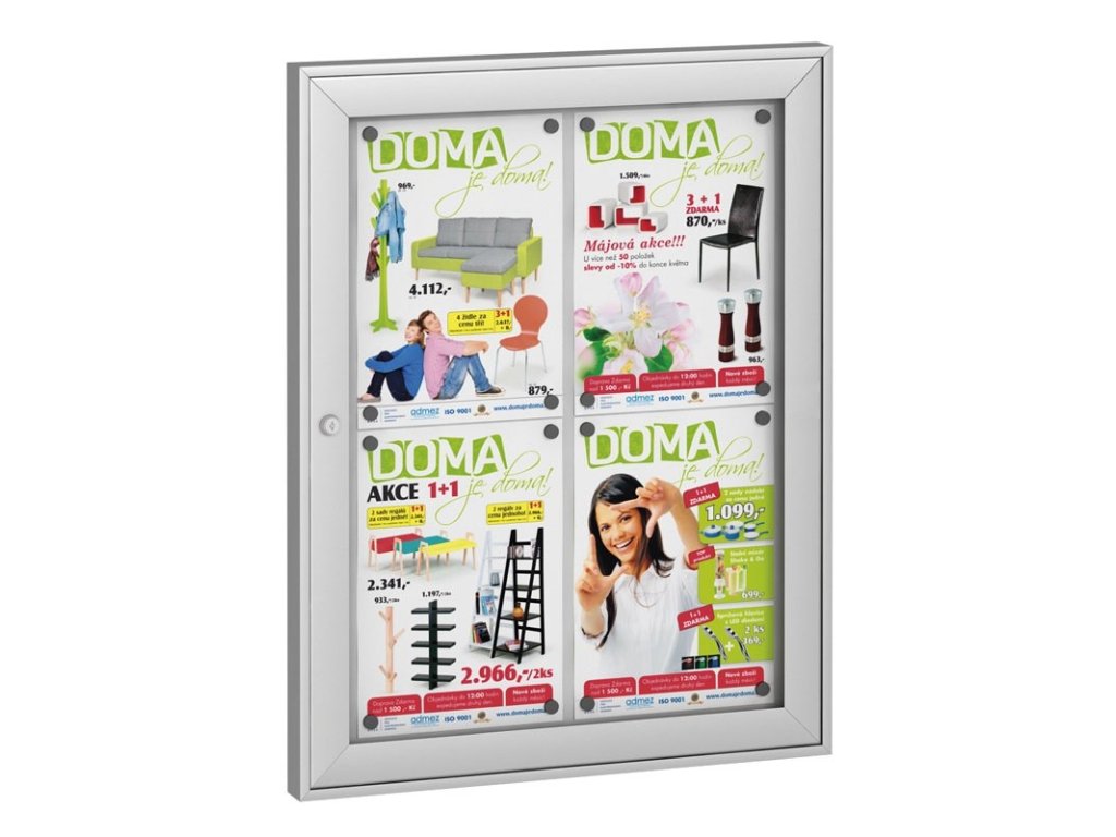 - vitrína se věší na zeď, nebo se montuje mezi sloupky do volného prostoru
