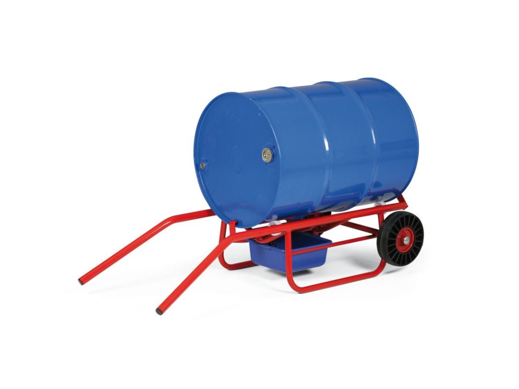 Vozík na sudy, který vám zjednoduší práci, použitelný též jako stojan na sudy v ležaté poloze s možností vylévání obsahu s pomocí kohoutu, aniž byste museli sud z vozíku sundávat. Vozík je vybaven stavitelnou pojistnou tyčí, překlápění z ležaté polohy do stojící polohy zvládne jedna osoba. Nádoba na úkapy kapalin je součástí dodávky. Plná pryžová kola o průměru 260 mm zajišťují, že vozík je schopen překonávat i drobné překážky a nerovnosti na podlaze. Vozík je vybaven kladkami, které dovolují snadné natočení sudu do požadované polohy pro vylévání. Konstrukce je svařovaná z ocelových trubek, kovové části jsou lakovány práškovým lakem v odstínu 3001 dle stupnice RAL.
