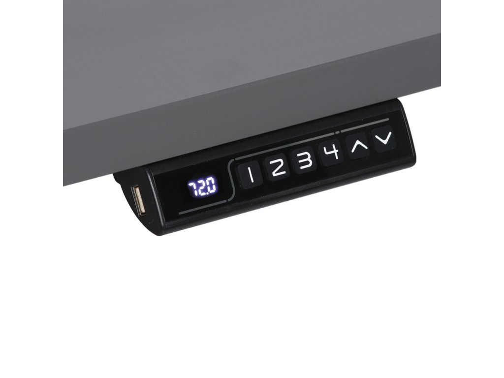 Samotné polohování výškově stavitelného stolu lze provést na milimetr přesně stisknutím tlačítek nahoru/dolů na ovládacím panelu. Při jakékoliv změně nastavení vždy na displeji uvidíte aktuální výšku stolu. Uložit si můžete své oblíbené pozice vsedě i ve stoje. To oceníte nejen při střídání pracovních poloh, ale i tam, kde se u jednoho stolu mění více pracovníků. Tlačítka na ovladači jsou přehledně rozmístěna tak, aby ovládání stolu bylo co nejpříjemnější. Nechybí ani podsvícený displej.