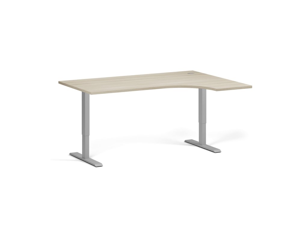Rohový výškově nastavitelný stůl, 160x120 cm, 1 motor, L/P, šedá podnož, dub přírodní