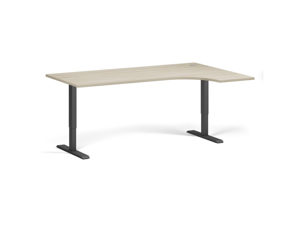 Rohový výškově nastavitelný stůl, 180x120 cm, 1 motor, L/P, černá podnož, dub přírodní
