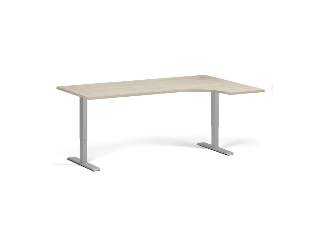 Rohový výškově nastavitelný stůl, 180x120 cm, 1 motor, L/P, šedá podnož, dub přírodní