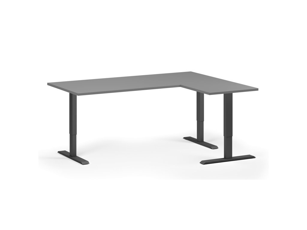 Rohový výškově nastavitelný stůl, 180x140 cm, 3 motory, L/P, černá podnož, grafit