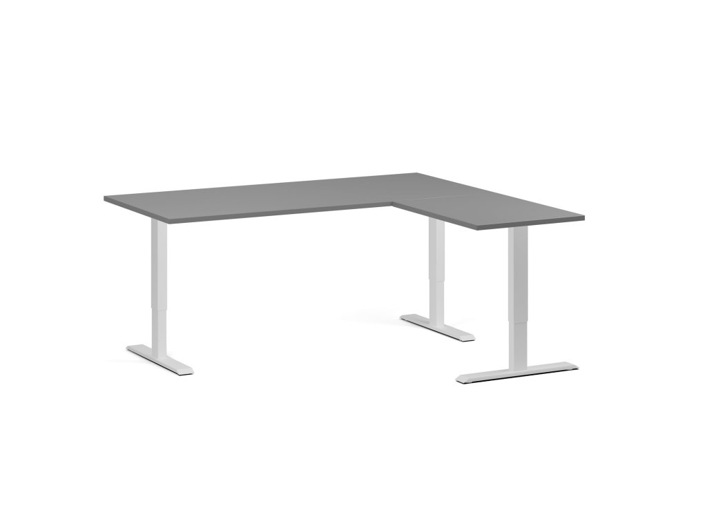 Rohový výškově nastavitelný stůl, 180x160 cm, 3 motory, L/P, bílá podnož, grafit