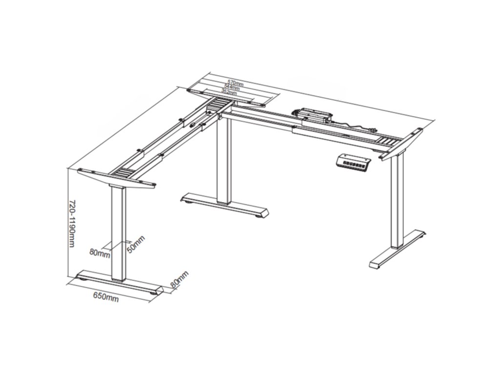 Rohový výškově nastavitelný stůl, 180x180 cm, 3 motory, L/P, černá podnož, buk