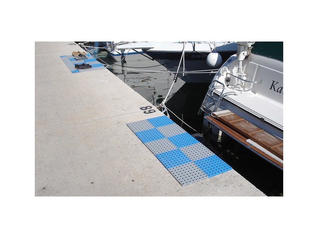 Elementárním prvkem systému je deska 250x250mm. Provedení povrchu všech dílů je protiskluzové, v povrchu jsou otvory o průměru 12mm, výška desek je 16mm. Vytvoření nájezdových hran se řeší pomocí rovného a rohového nájezdu. Jednotlivé díly systému se spojují plastovými spojkami, které jsou v příslušném počtu u každého modulu zahrnuty v ceně. Podlahový systém je možno vrstvit na sebe a tím vytvářet nájezdové rampy různé výšky i délky.
