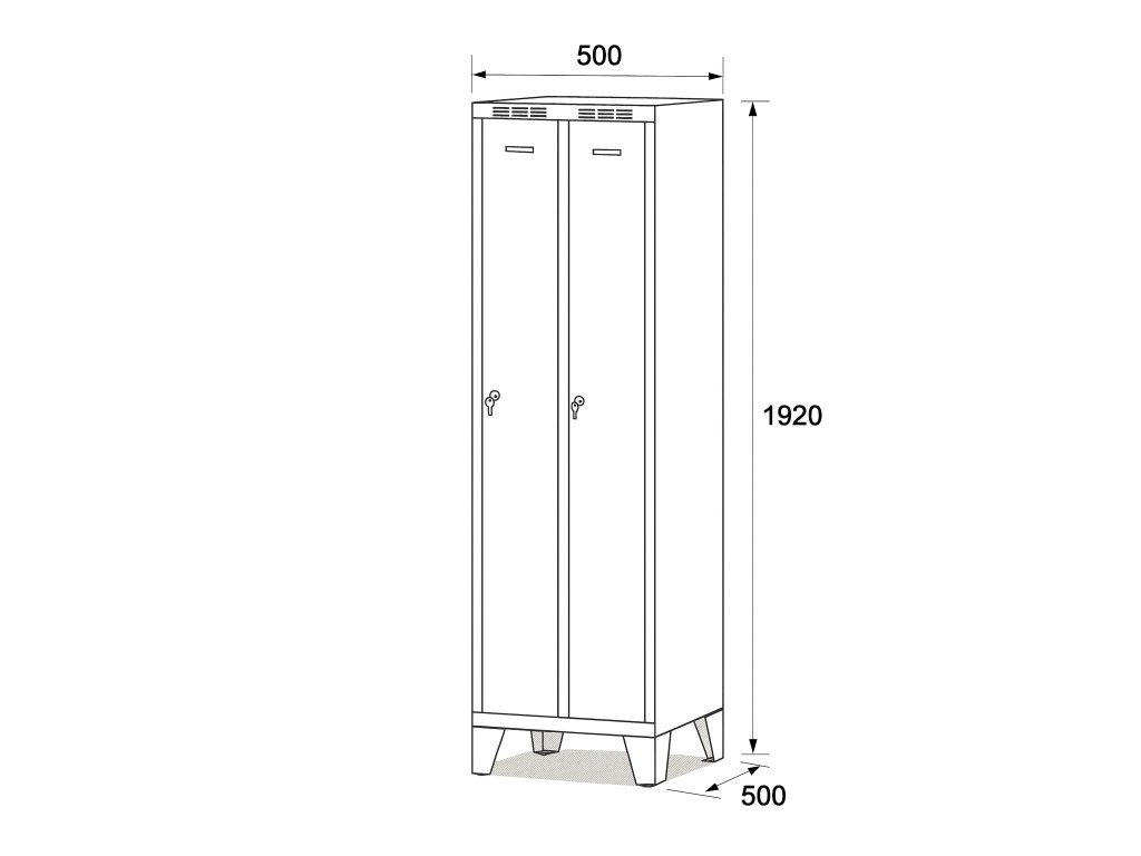 Skříňku tvoří 2 části o šířce oddílu 250 mm. Zúžené provedení je ideální tam, kde je potřeba šetřit místem – například v úzkých chodbách, předsíních nebo menších šatnách. Přesto poskytuje dostatek prostoru pro uložení osobních věcí i běžného oblečení.